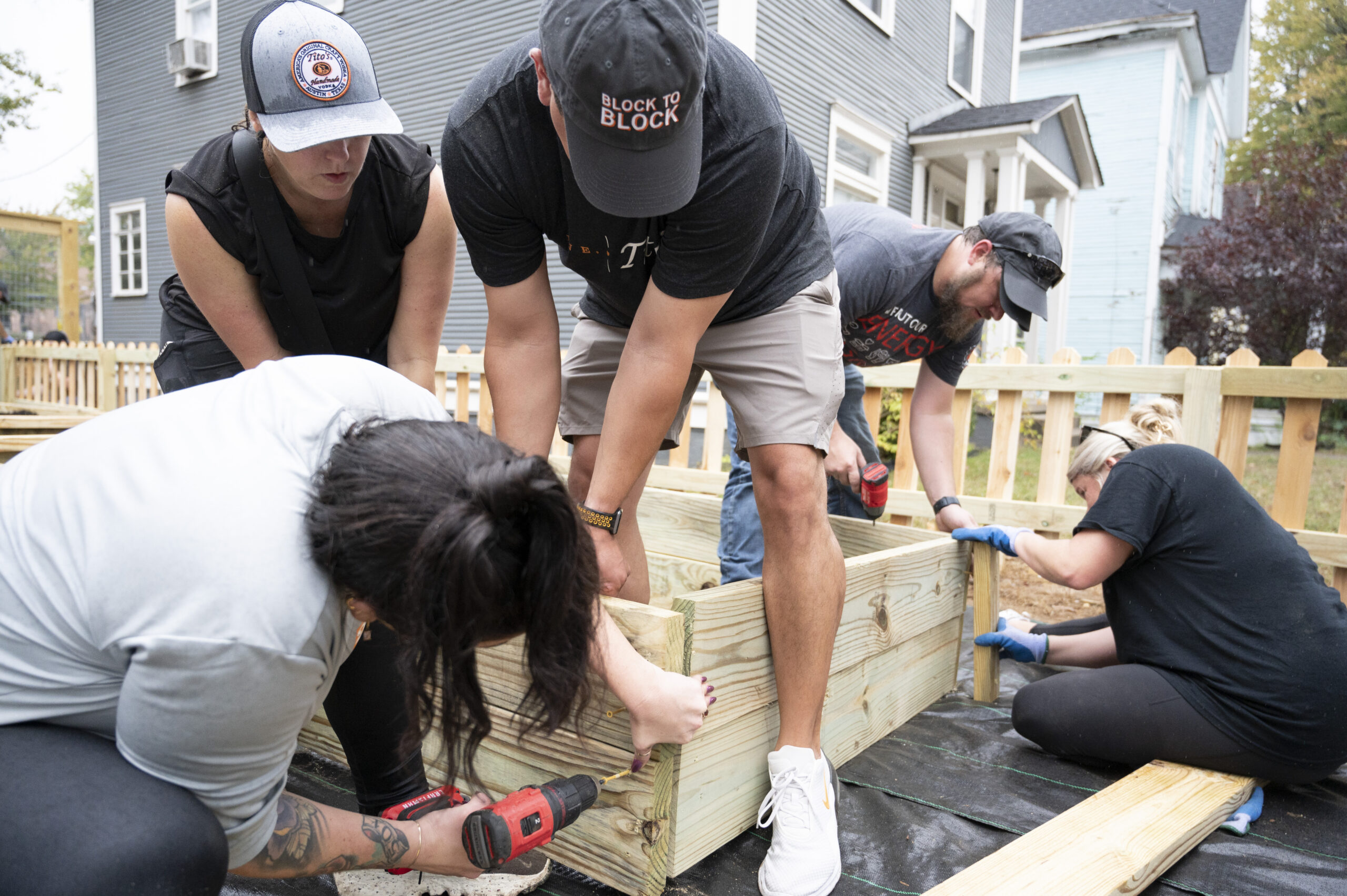 Volunteers participating with a business, corporation, college organization, church, school groups, or other large group